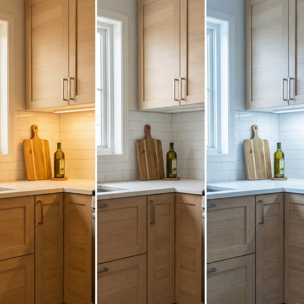 Switch between Warm (3000K), Natural (4000K), and White (6000K) to match your home's mood.